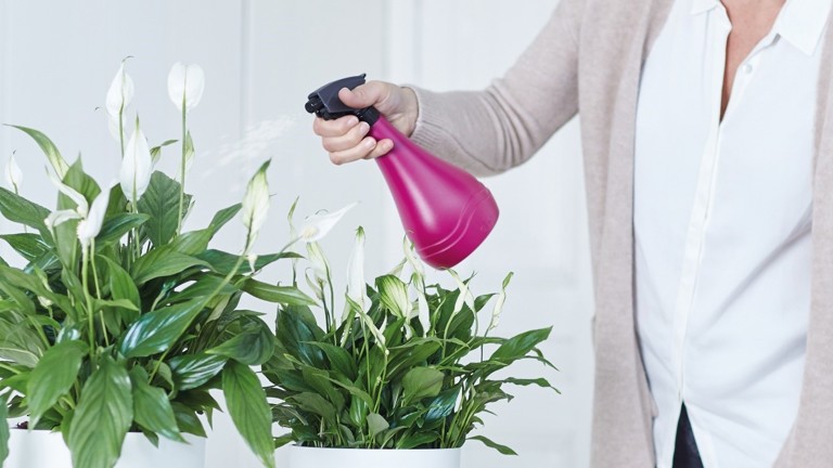 3. Spray your indoor plants with a sprayer once every few days. Tropical plant species such as the strelitzia, monstera or calathea especially like this because it increases the humidity. This simulates the natural living environment of these plants. Tip: Use cooled down, boiled water to prevent chalkstains on the leaves of your plants.