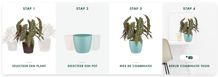 Met deze elho mix & match tool maak je in 4 simpele stappen jouw persoonlijke pot-plant combinatie. Door een eigen foto te uploaden zie je direct hoe deze pot-plant combinatie bij jou thuis staat.