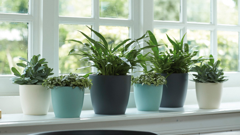 Zufriedene und gesunde Zimmerpflanzen im Sommer