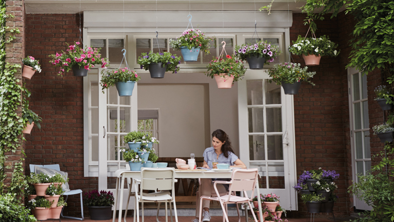 Een andere handige manier om je kleine tuin of balkon toch een groene of kleurrijke uitstraling te geven is verticaal tuinieren. Gebruik de schutting, muur of grond om potjes en bakjes te stapelen of trapsgewijs op te hangen. Ondanks dat je minder ruimte nodig hebt, kun je toch veel planten of bloemen kwijt. Bovendien oogt dit een stuk opgeruimder dan verschillende bloempotten bij elkaar. Een andere handigheid om rust te creëren is kiezen voor een paar grote bloempotten in plaats van verschillende kleine potjes. De pure round-bloempotten van elho laten je planten echt leven en zijn door de unieke vorm en het brede kleurenpalet een aanwinst voor elk binnen- of buiteninterieur!