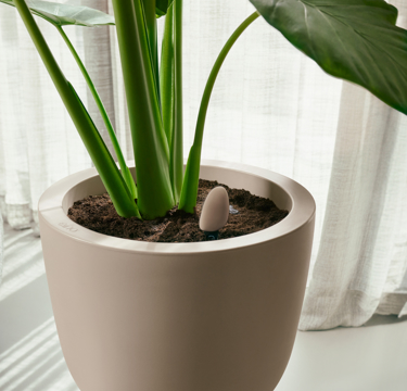 Geen stress! De smart pebble neemt het werk uit handen en geeft je precies aan wat je plant nodig heeft.