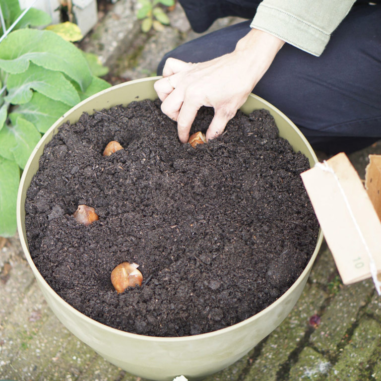 If you want to enjoy cheerful spring flowers, it's essential to plant flower bulbs in the fall, preferably before December, so the bulbs have time to establish roots. Plant bulbs in groups of five or more, or create a bulb lasagna in a vibia campana pot. The different layers of bulbs will bloom alternately, allowing you to enjoy a display of flowers from February to May. Well worth it, right? If you need bulb inspiration, check out shop.studiomayandjune.com.